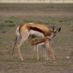 There are three variations in the color of springbok pelage. In addition to the normal-coloured springboks there are also black and white morphs. Although born jet black, adult “black” springboks primarily have two shades of chocolate-brown and a white marking on the face. White springboks are predominantly white with a very light brown coloured side stripe.